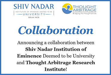 We are happy to announce that Thought Arbitrage Research Institute (TARI) and Shiv Nadar University (SNU) have entered into a Memorandum of Understanding, to collaborate on research, consultancy and education.SNU is a multi-disciplinary university established in 2011, with a mission to support research.